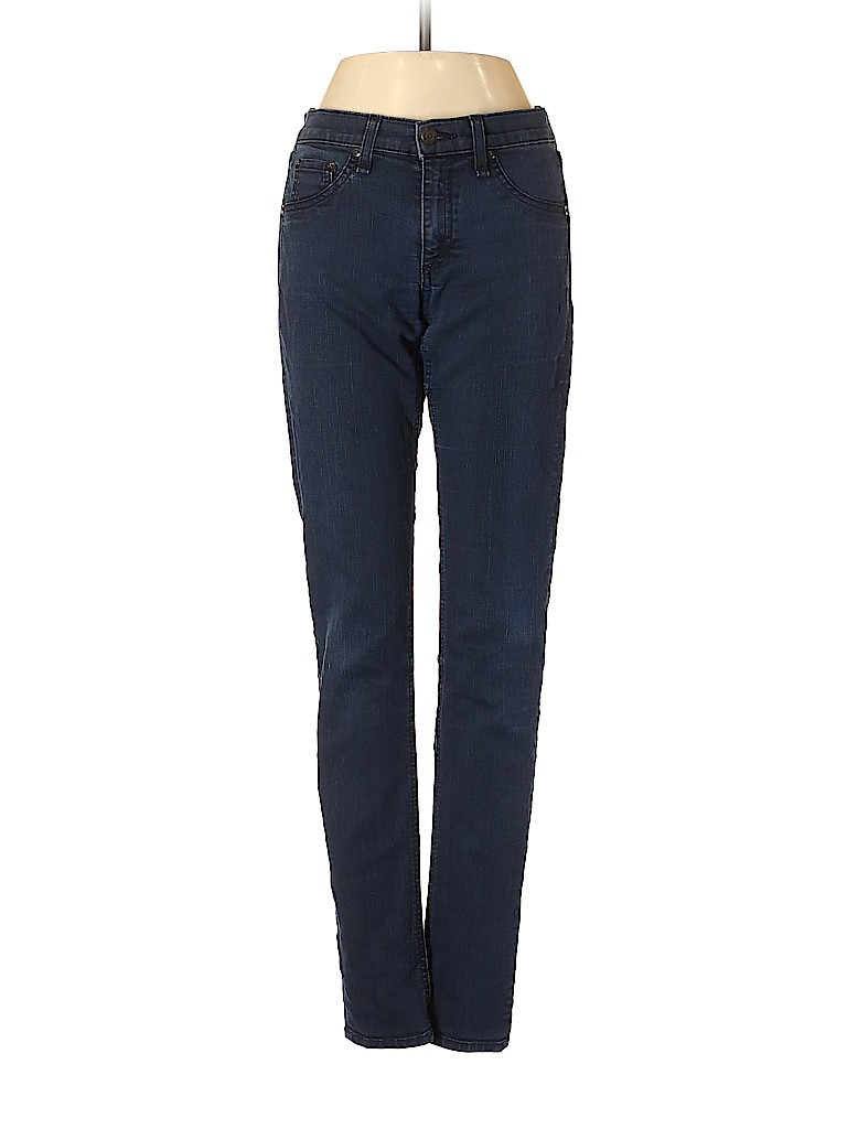- Blue, low rise waist
