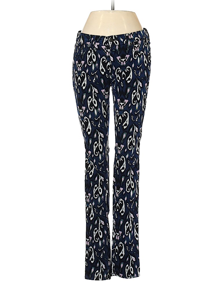- Blue, low rise waist