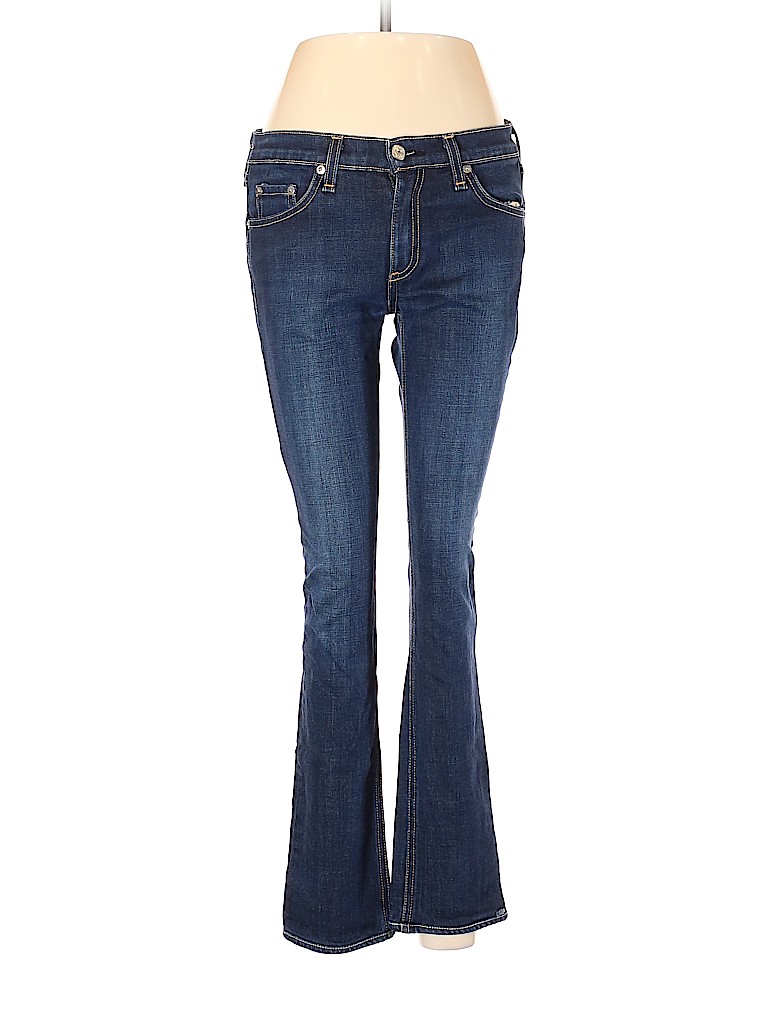 - Blue, low rise waist