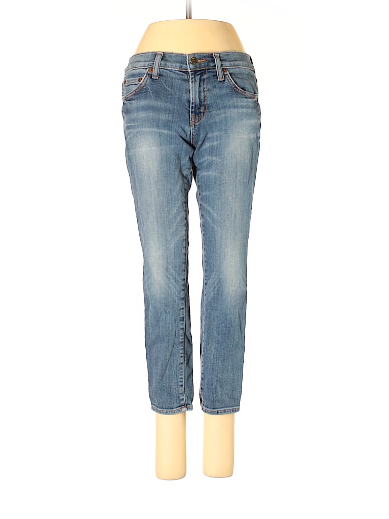 - Blue, low rise waist