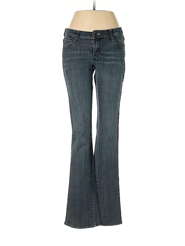 - Blue, low rise waist