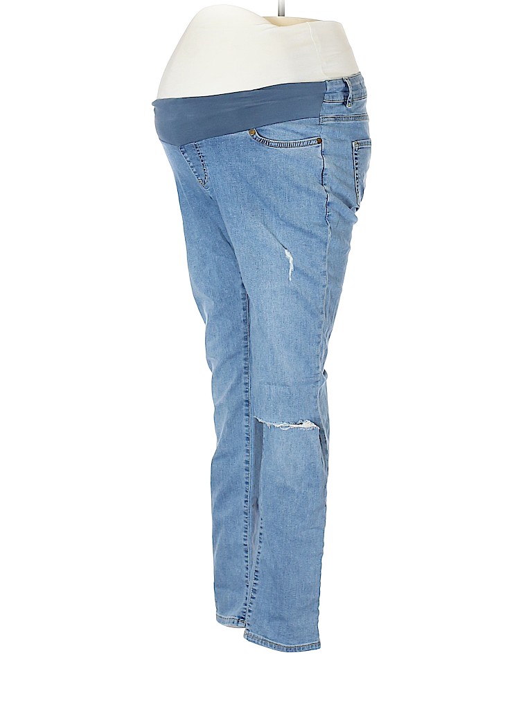 - Blue, low rise waist