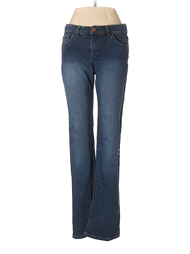 - Blue, low rise waist