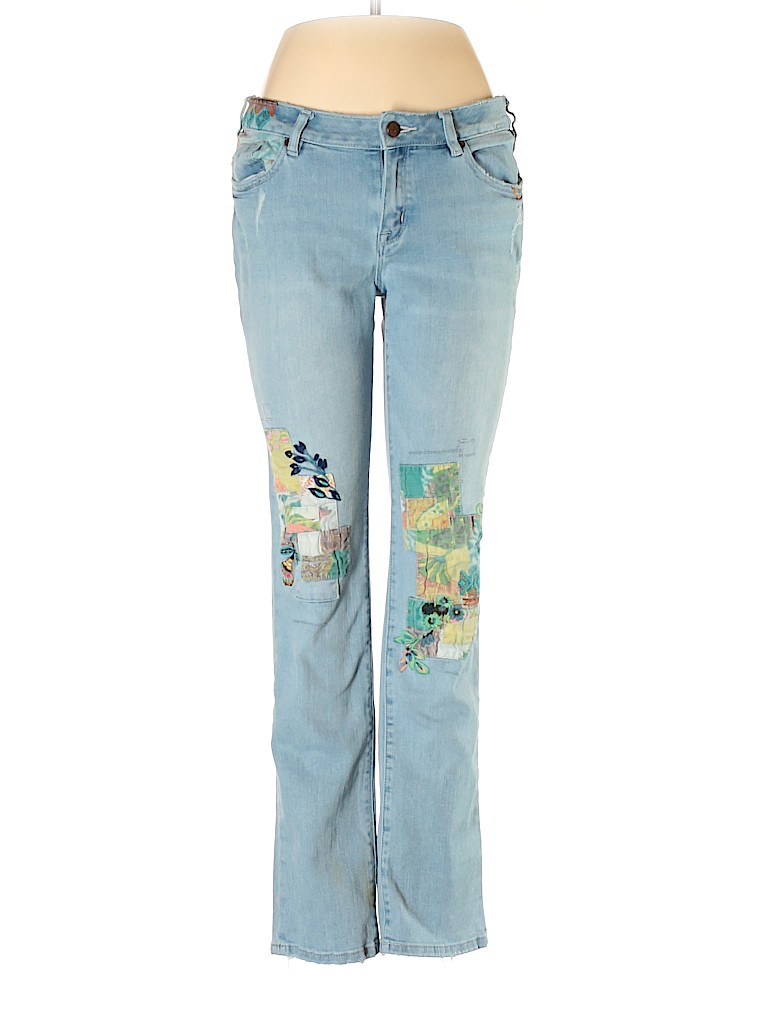 - Blue, mid rise waist