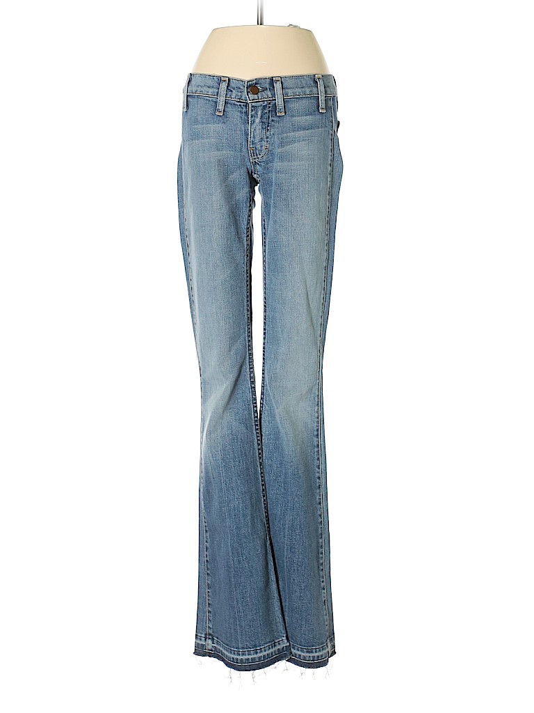 - Blue, low rise waist