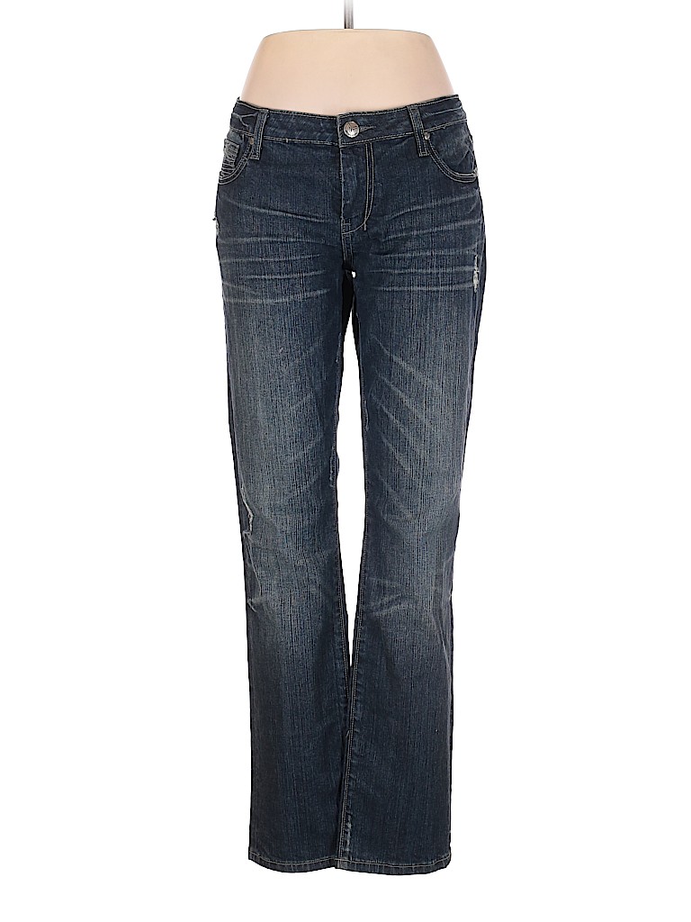 - Blue, low rise waist
