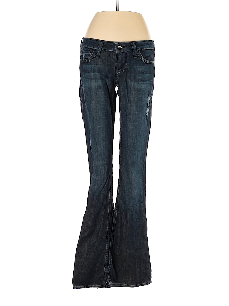 - Blue, low rise waist