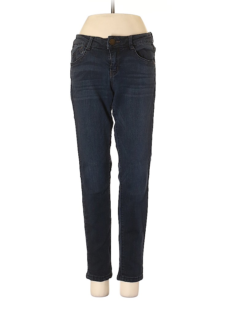 - Blue, low rise waist