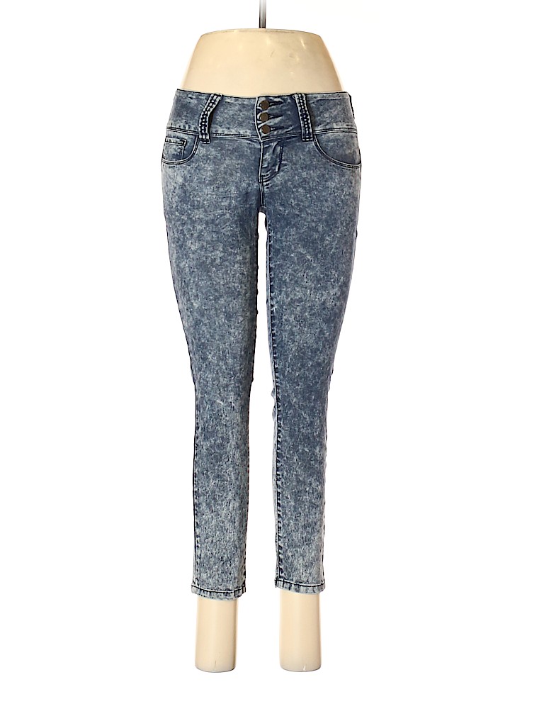 - Blue, low rise waist
