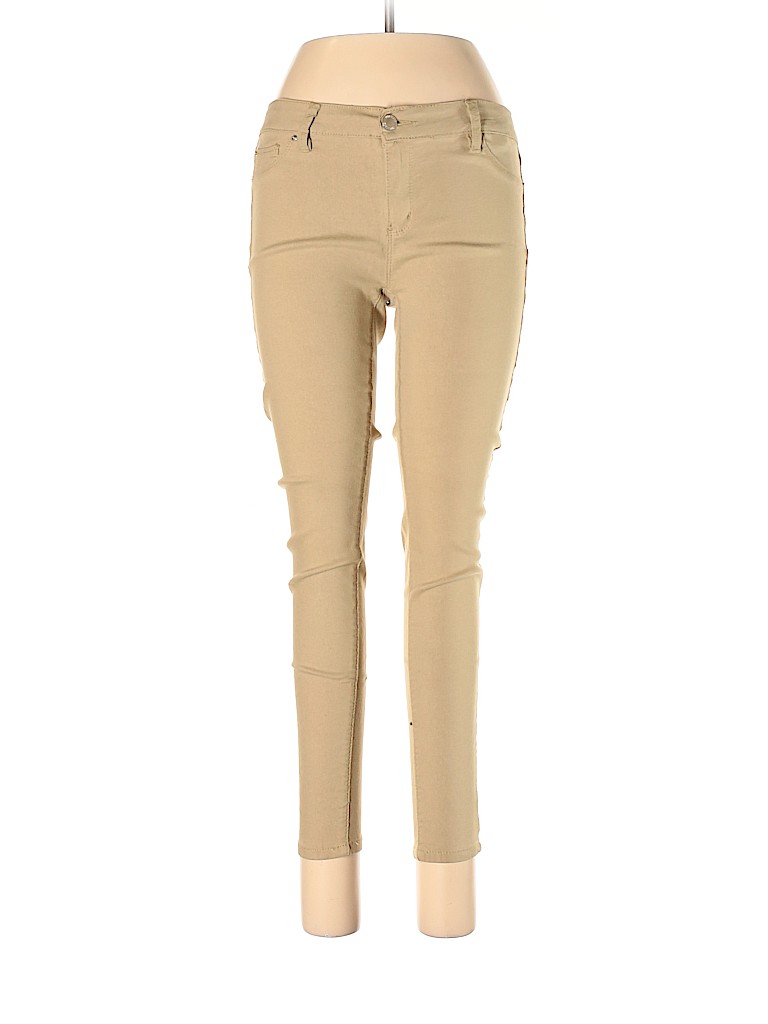 - Tan, mid rise waist