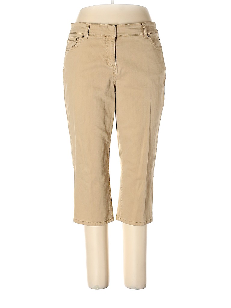 - Tan, mid rise waist