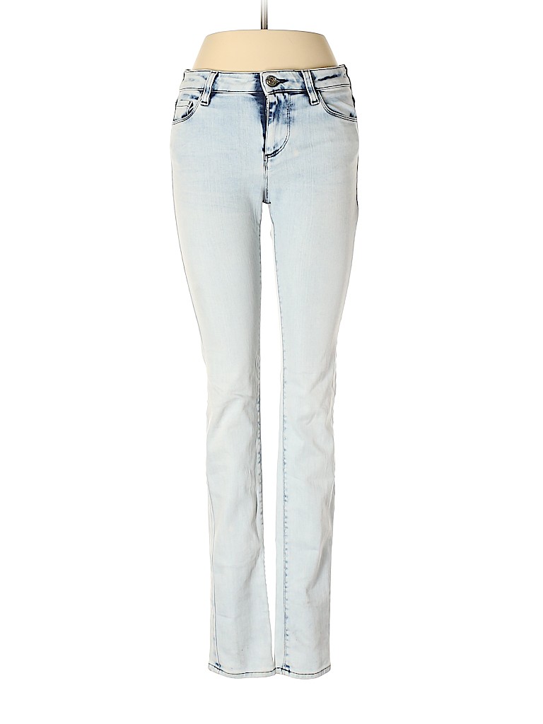 - Blue, low rise waist