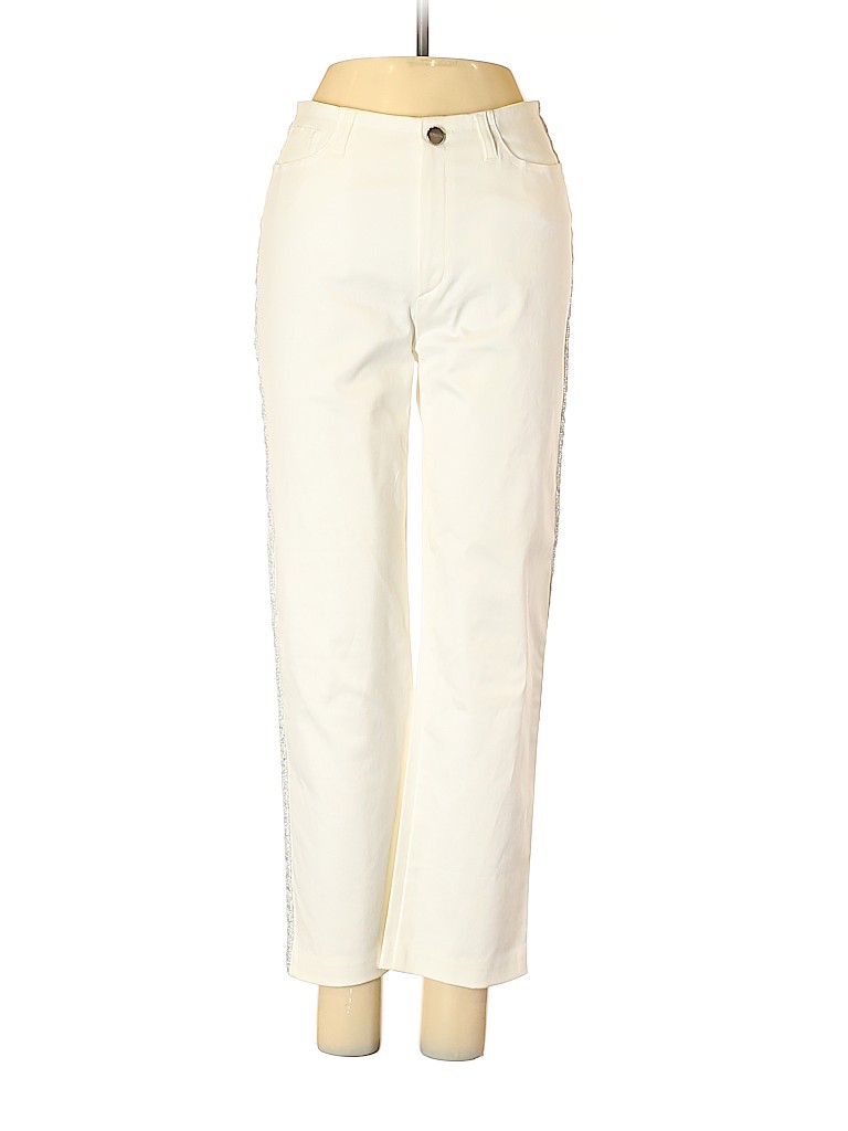 - White, mid rise waist