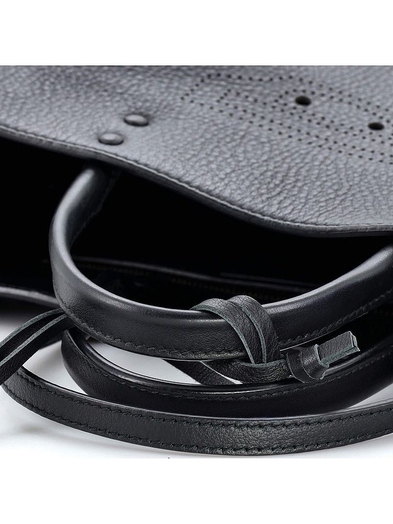 - Exterior Color: black | Interior Color: black | Exterior Material: Leather | Interior Material: Leather | Hardware Color: Aged Gold | Accessories: Mirror, Detachable StrapStrap Length: 20-22 | Item No: 236566/162 | CLAIRE CODE: HB.BA.BPTE.LE