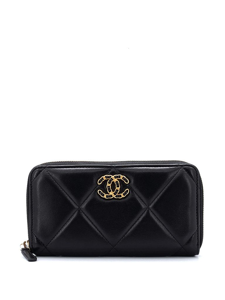 - Exterior Color: black • Interior Color: pink • Exterior Material: Leather • Interior Material: Fabric • Hardware Color: Gold Tone • Accessories: Box, Dust Bag, Authenticity Card • CLAIR CODE: WL.CH.1LT.QULA.LO