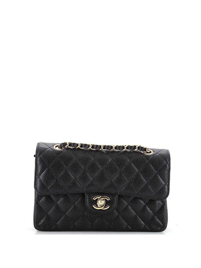 - Exterior Color: black | Interior Color: red | Exterior Material: Leather | Interior Material: Leather | Hardware Color: Gold | Accessories: Dust BagStrap Length: 17 | Item No: 240774/1 | CLAIRE CODE: HB.CH.CDFL.QCA.SM