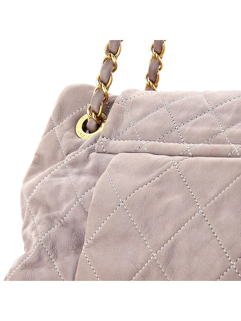 - Exterior Color: gray | Interior Color: neutral | Exterior Material: Leather | Interior Material: Fabric | Hardware Color: Gold | Accessories: Dust BagStrap Length: 17 | Item No: 242050/1 | CLAIRE CODE: HB.CH.CHCI.QICA.LG