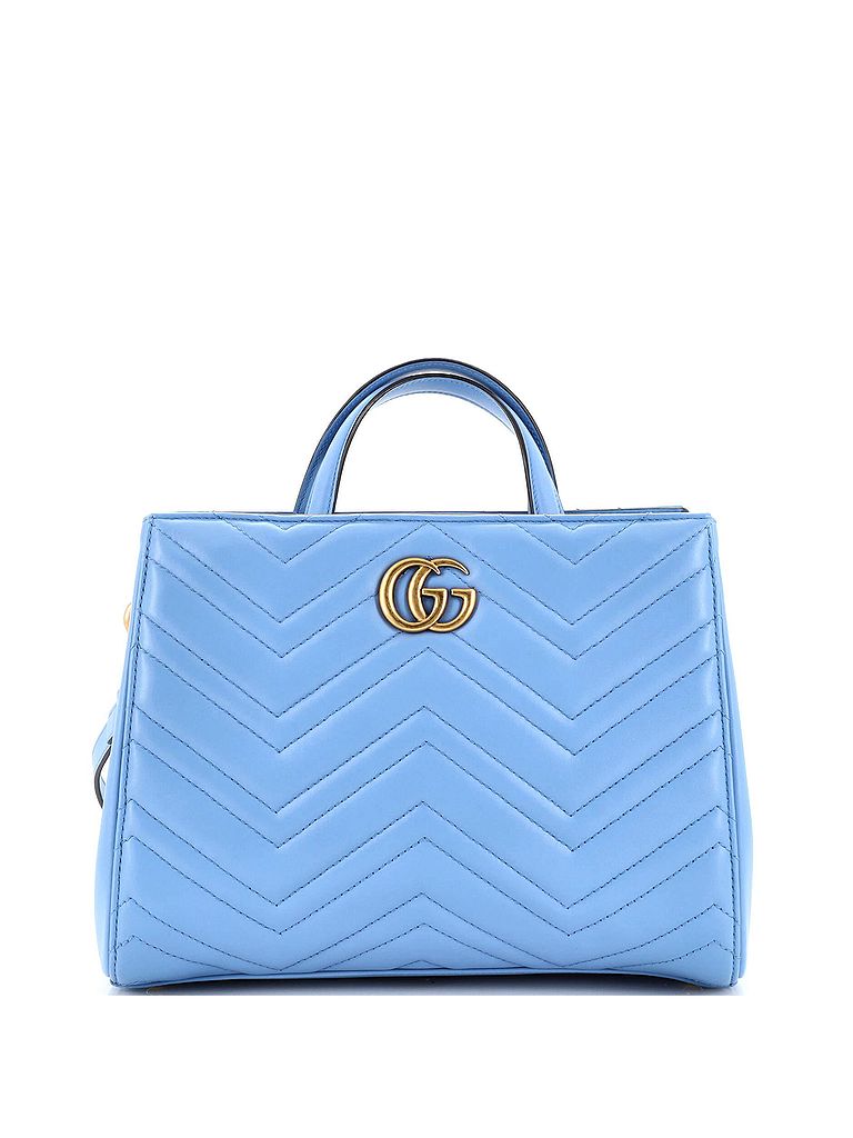 - Exterior Color: blue | Interior Color: neutral | Exterior Material: Leather | Interior Material: Microfiber | Hardware Color: Aged Gold | Accessories: Dust Bag, Detachable StrapStrap Length: 16-18 | Item No: 235199/38 | CLAIRE CODE: HB.GC.GGMT.MAL.SM