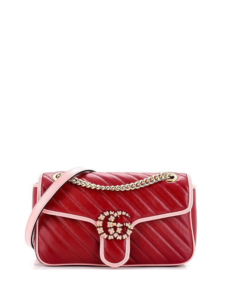 - Exterior Color: red | Interior Color: neutral | Exterior Material: Leather | Interior Material: Microfiber | Hardware Color: Gold | Accessories: Dust BagStrap Length: 12-20 | Item No: 239990/4 | CLAIRE CODE: HB.GC.MRFB.DGQL.SM