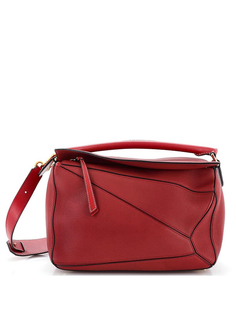 - Exterior Color: red | Interior Color: neutral | Exterior Material: Leather | Interior Material: Fabric | Hardware Color: Gold | Accessories: Detachable StrapStrap Length: 15 | Item No: 240072/1 | CLAIRE CODE: HB.LW.PZZL.LE.ME