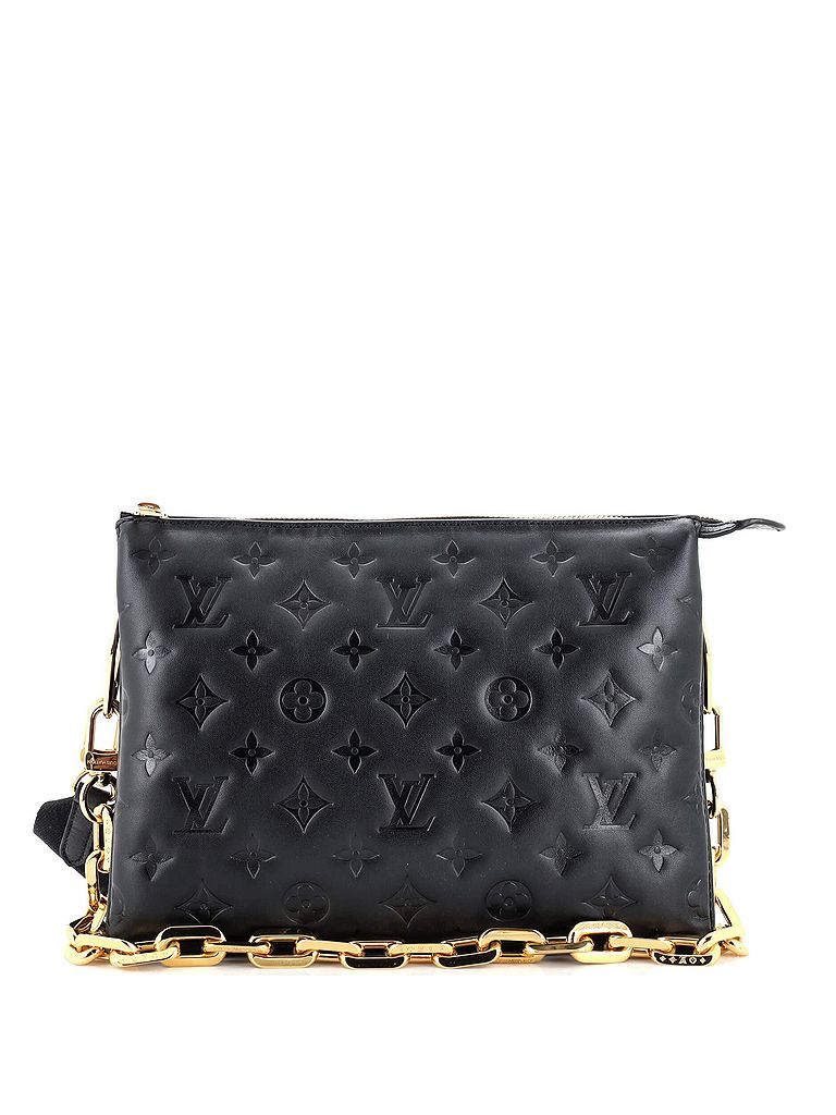 - Exterior Color: black | Interior Color: pink | Exterior Material: Leather | Interior Material: Microfiber | Hardware Color: Gold | Accessories: Extra Strap, Dust Bag, Detachable StrapStrap Length: 10-21 | Item No: 236124/146 | CLAIRE CODE: HB.LV.CSOG.MGLB.PM