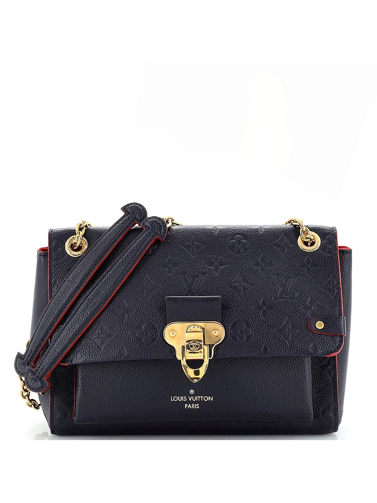 - Exterior Color: blue • Interior Color: red • Exterior Material: Leather • Interior Material: Microfiber • Hardware Color: Gold • Accessories: No Accessories • Strap Length: 23 • CLAIR CODE: HB.LV.VVIN.MEL.PM