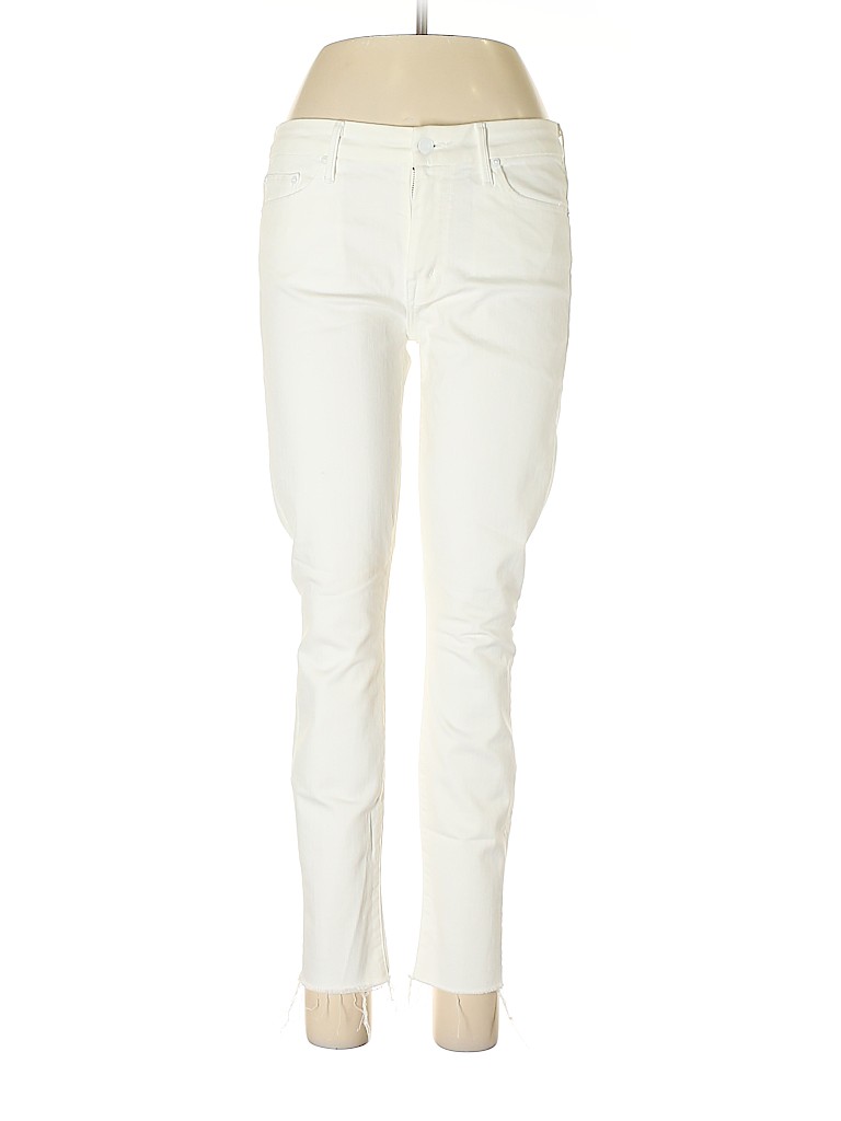 - White, mid rise waist