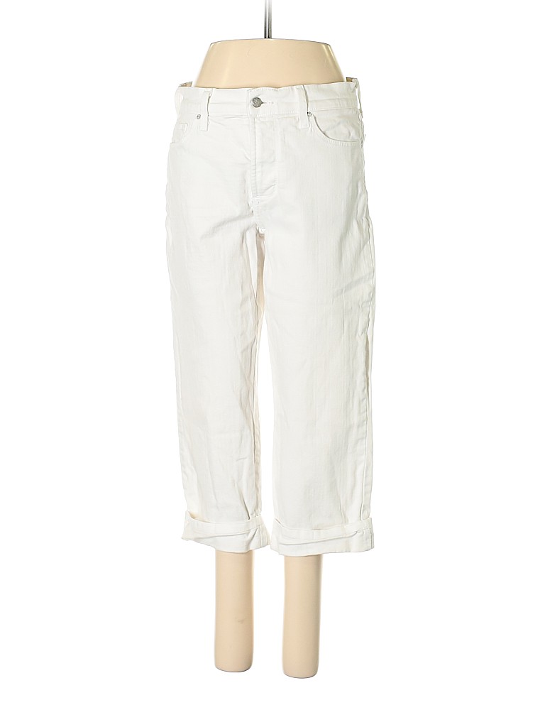 - White, mid rise waist