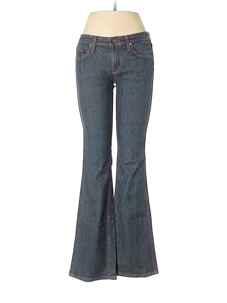 - Blue, low rise waist