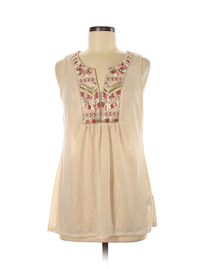 - Sleeveless, tan