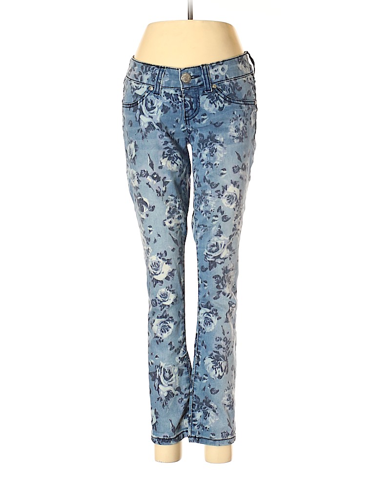 - Blue, low rise waist