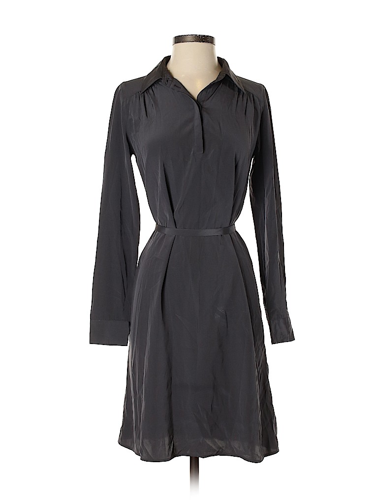 - Long sleeves, shirtdress, solid, gray, knee length