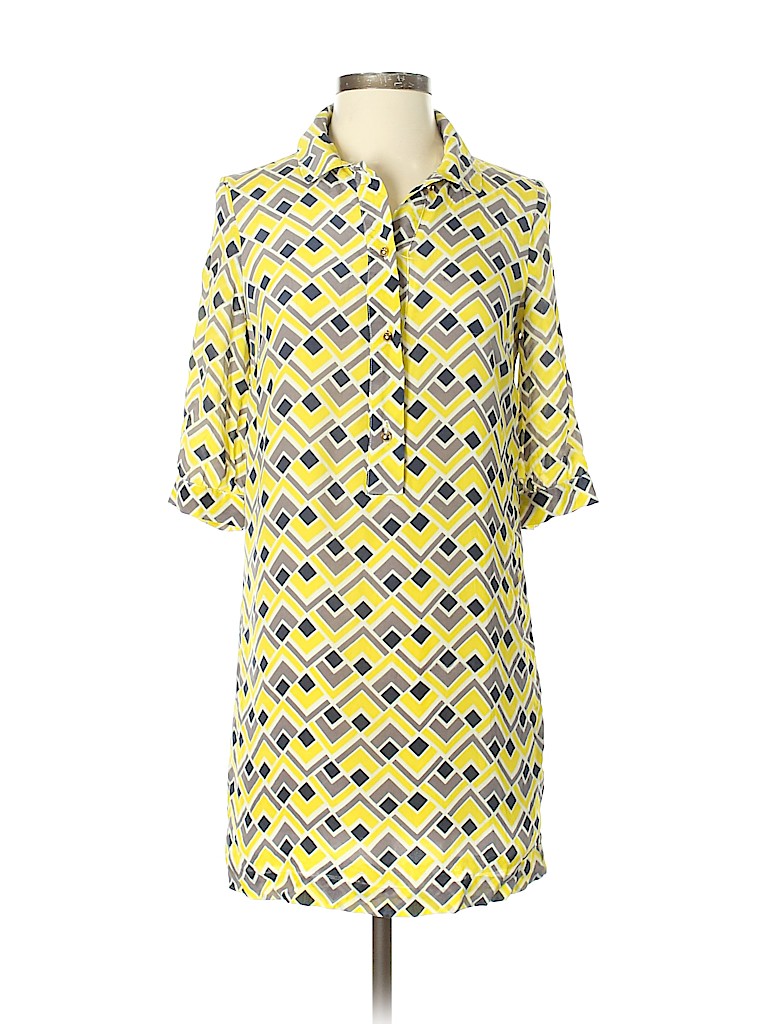 - 3-4 sleeves, shirtdress, printed, yellow, work, knee length