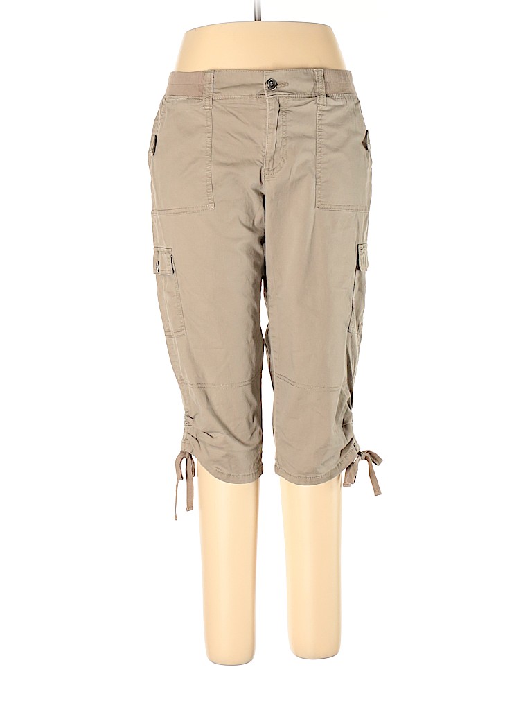- Tan, mid rise waist
