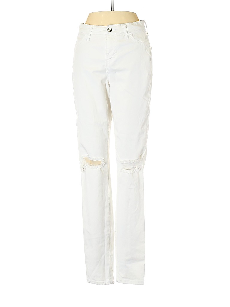 - White, mid rise waist