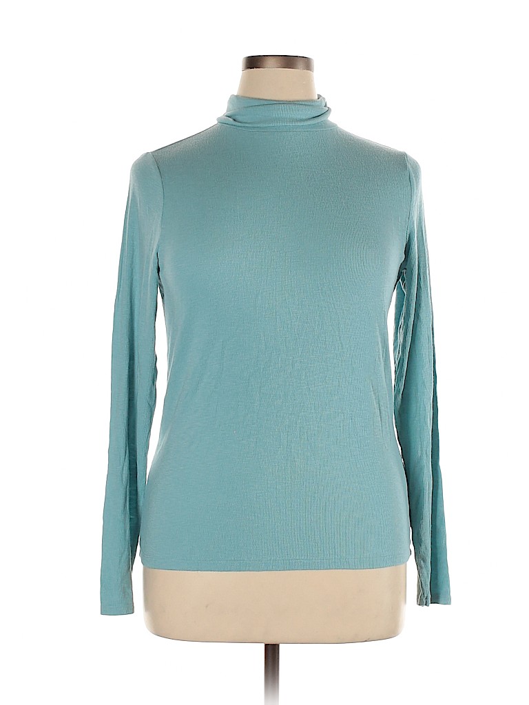 - Long sleeve, turtleneck neckline, blue