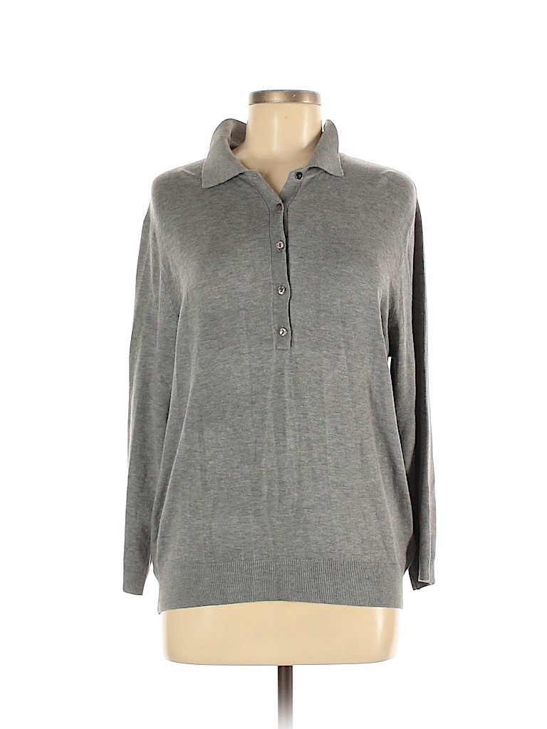 - 3/4 sleeve, polo collar, gray