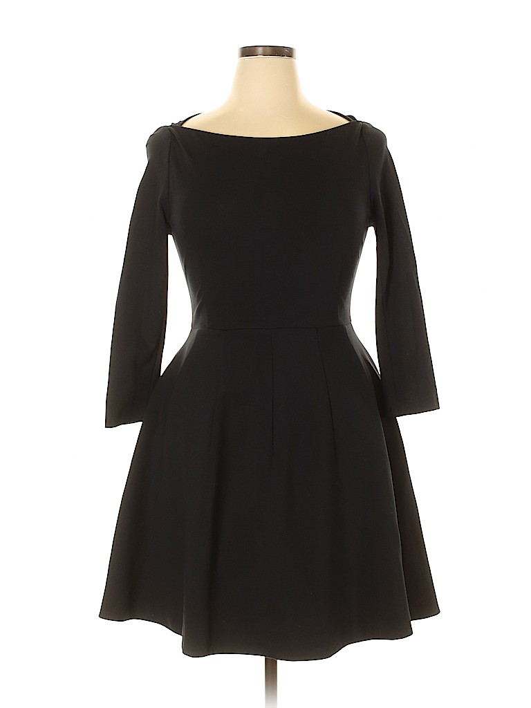 - Long sleeves, boat neckline, fit & flare silhouette, solid, black, knee length